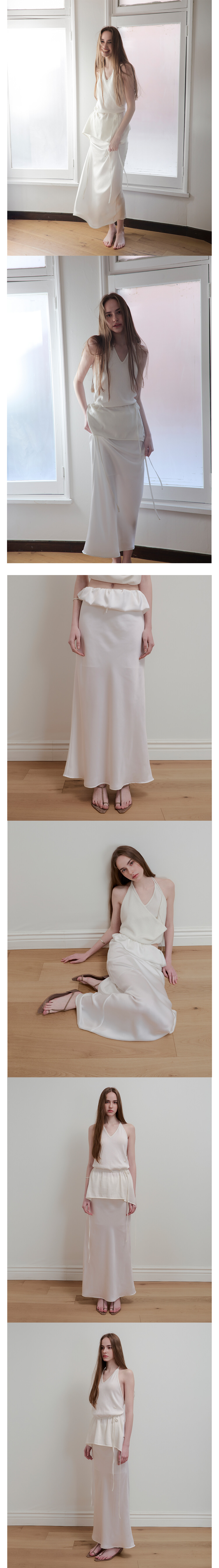 BALLOON DETAIL SATIN SKIRT - WHITE