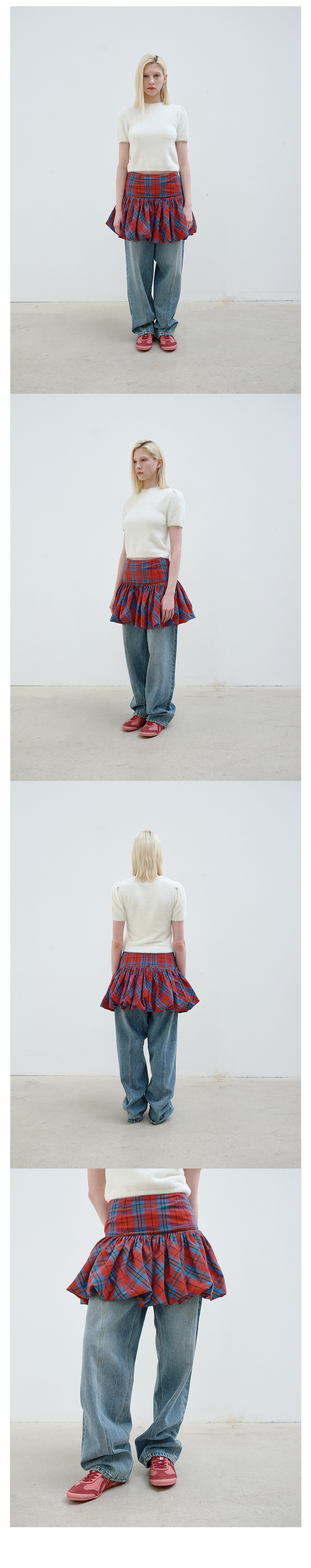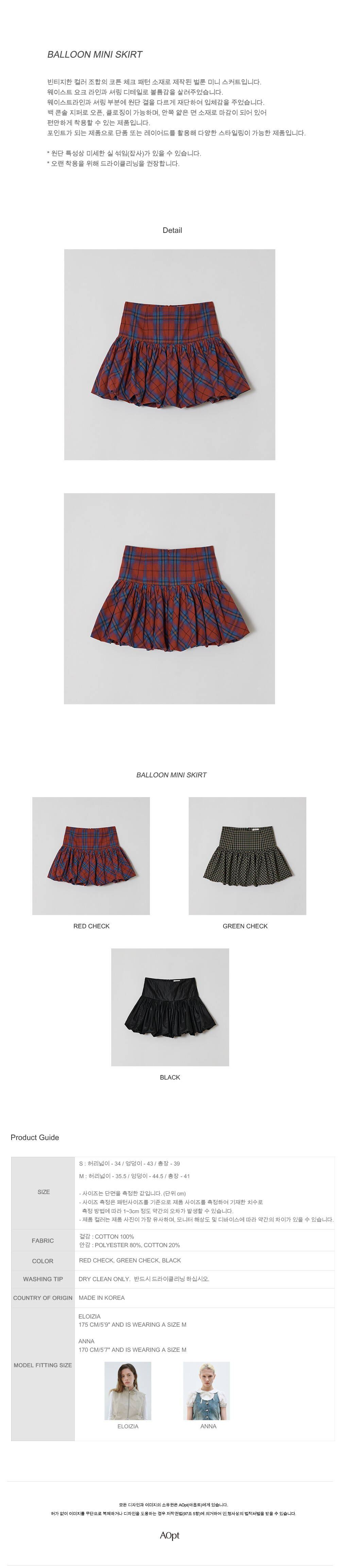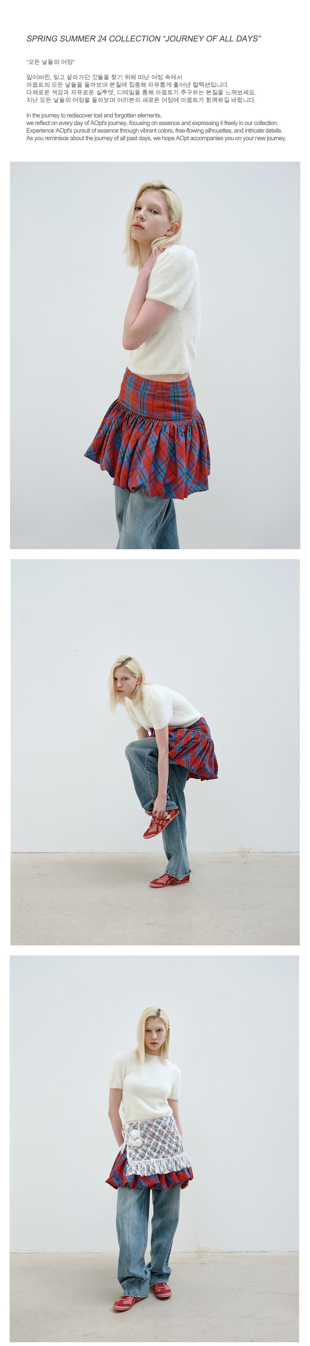 빈티지한 컬러 조합의 코튼 체크 패턴 소재로 제작된 벌룬 미니 스커트입니다.