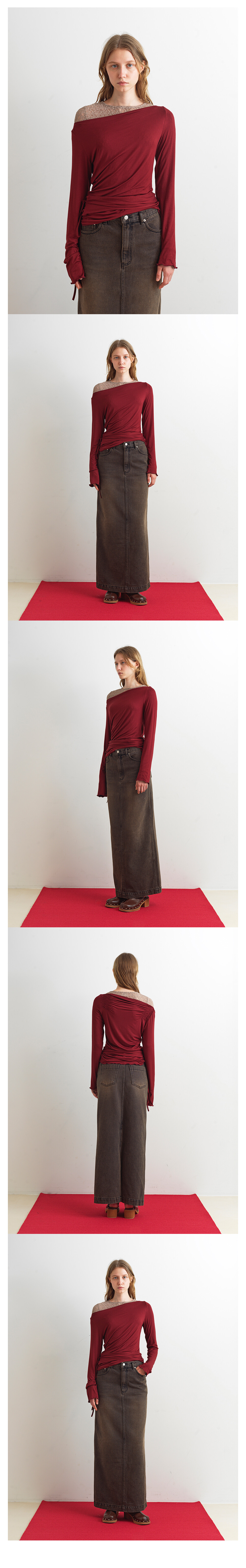 [1st Reorder] BOAT NECK TWO WAY STRAP TOP - WINE
