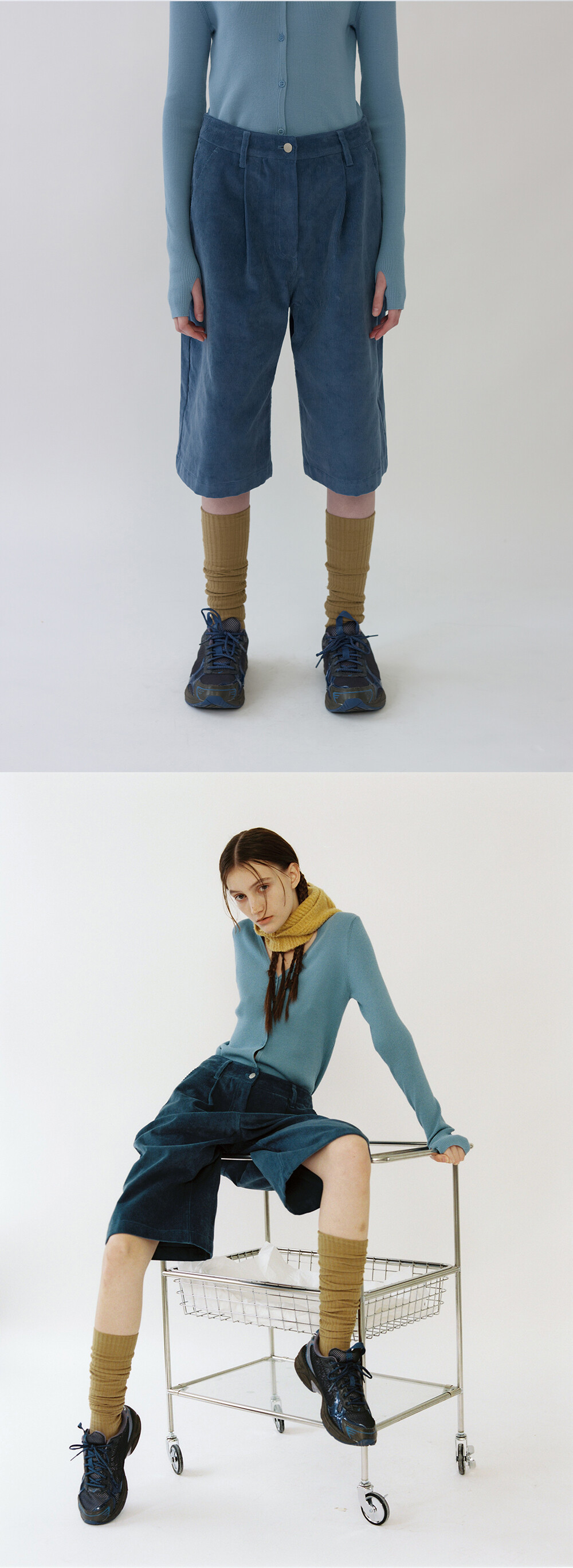 CORDUROY BERMUDA PANTS - BLUE