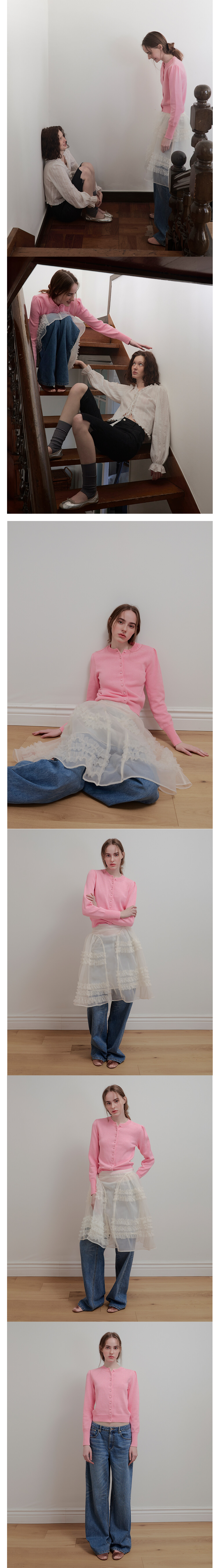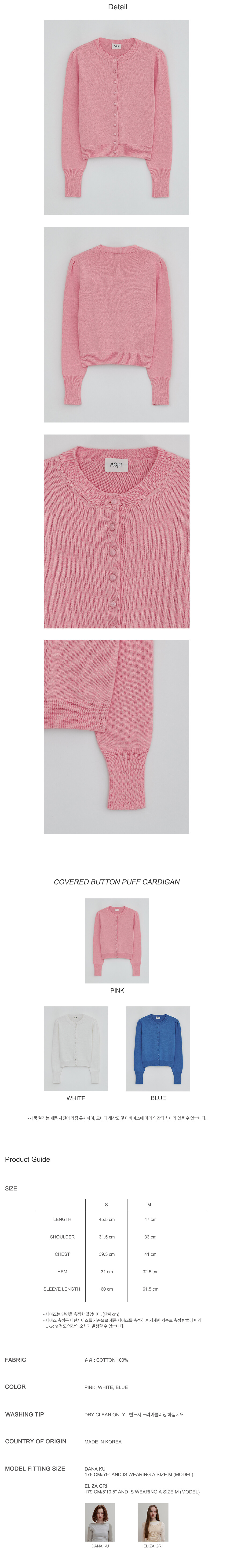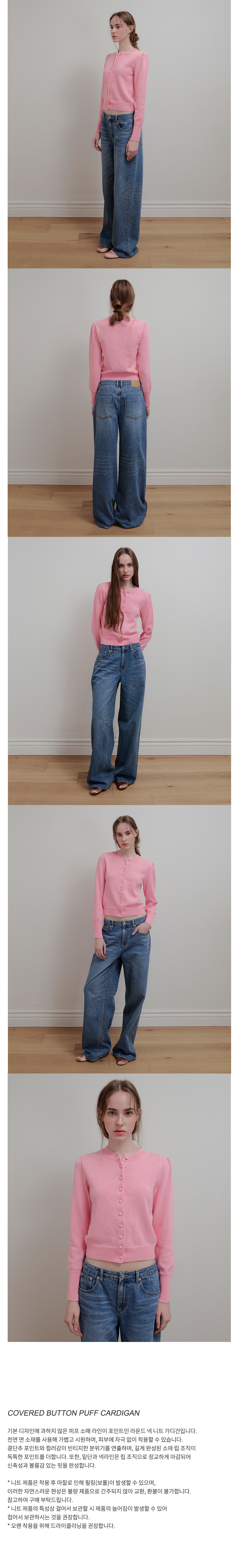COVERED BUTTON PUFF CARDIGAN - PINK