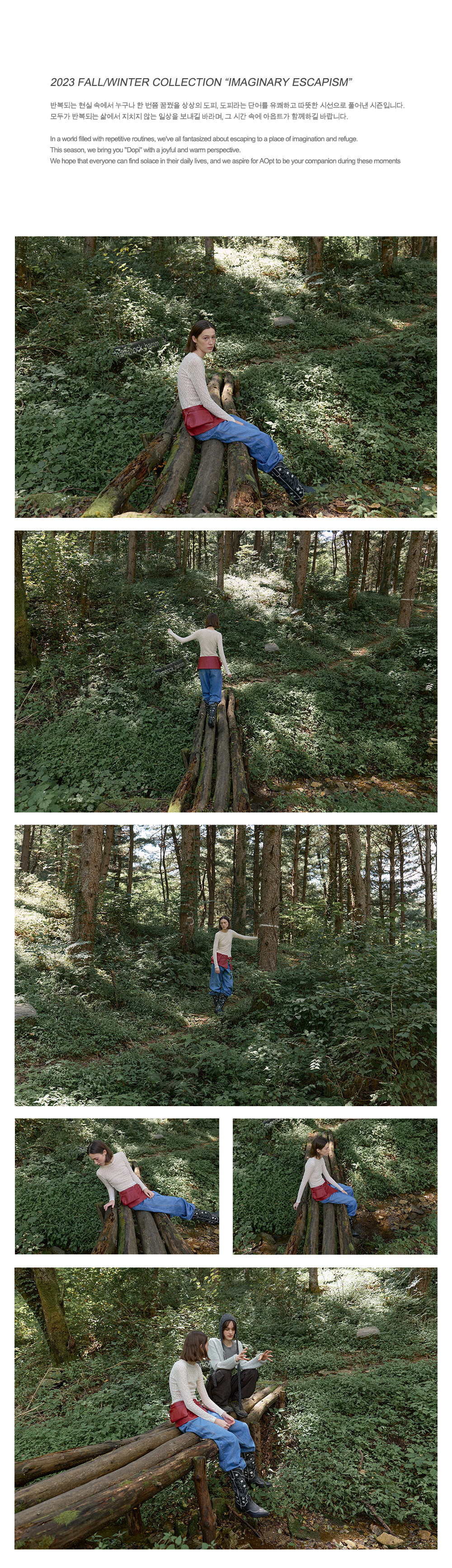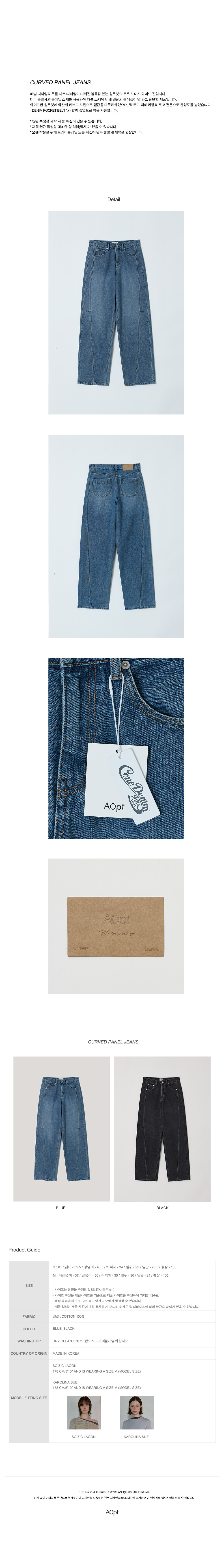 패널 디테일과 무릎 다트 디테일이 더해진 볼륨감 있는 실루엣의 로우 라이즈 와이드 진입니다.