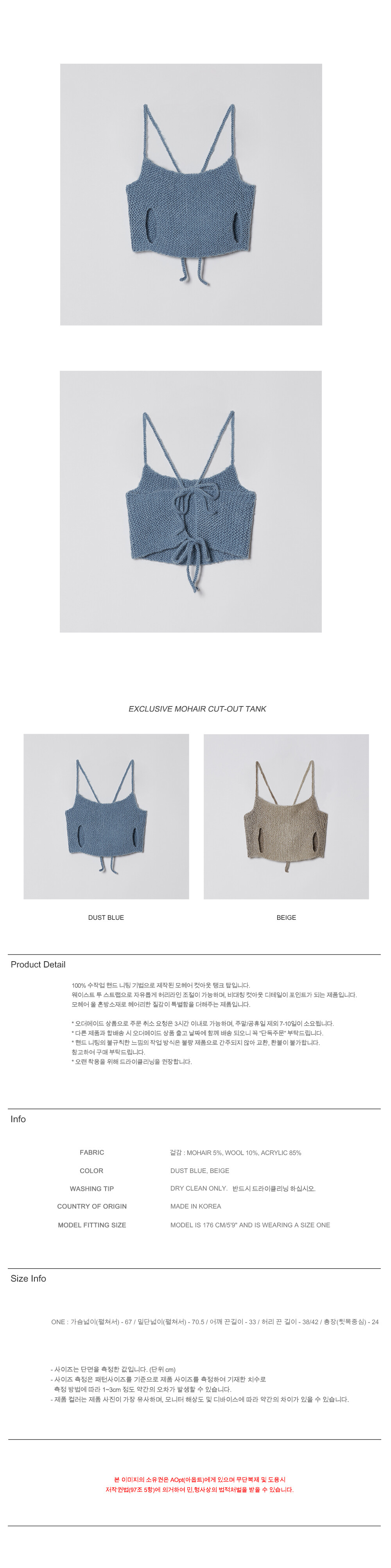 - 모니터의 해상도에 따라 화면에서 보시는 것과 약간의 색감 차이가 발생 할 수 있으며, 사이즈는 측정 기준에 따라 1~3cm 차이가 날 수 있다는 점 이해해주시기 바랍니다.