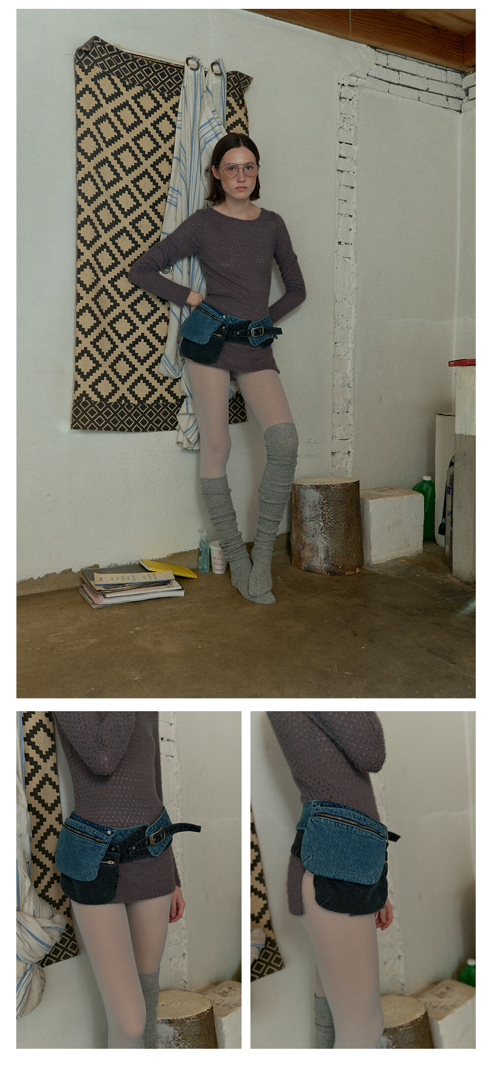 [7th Reorder] DENIM POCKET BELT - BLACK