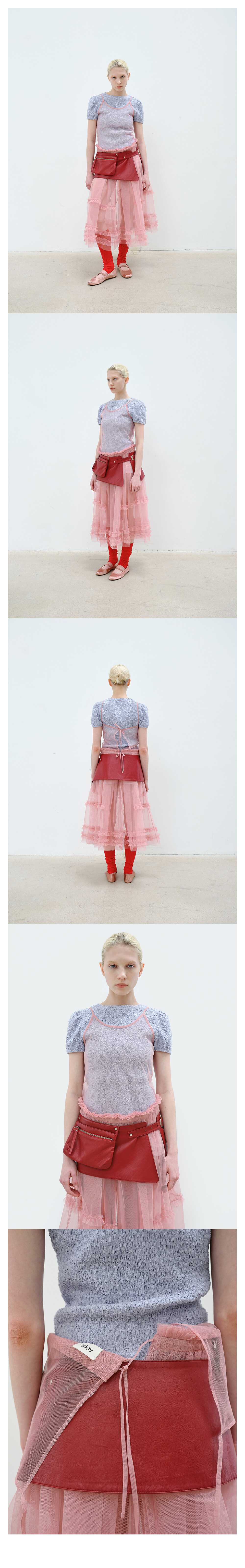 [2nd Reorder] FAUX LEATHER POCKET BELT SKIRT - RED