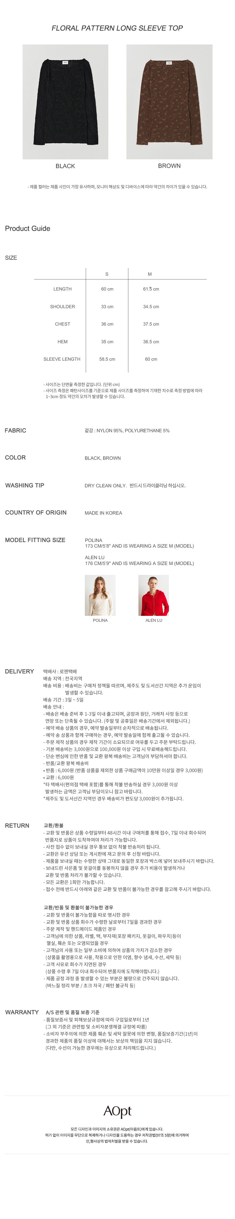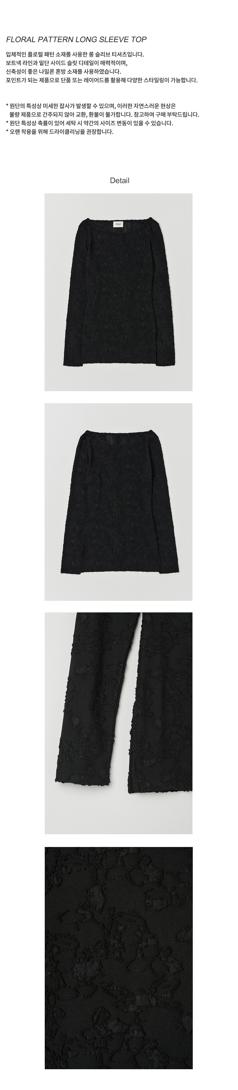 FLORAL PATTERN LONG SLEEVE TOP - BLACK