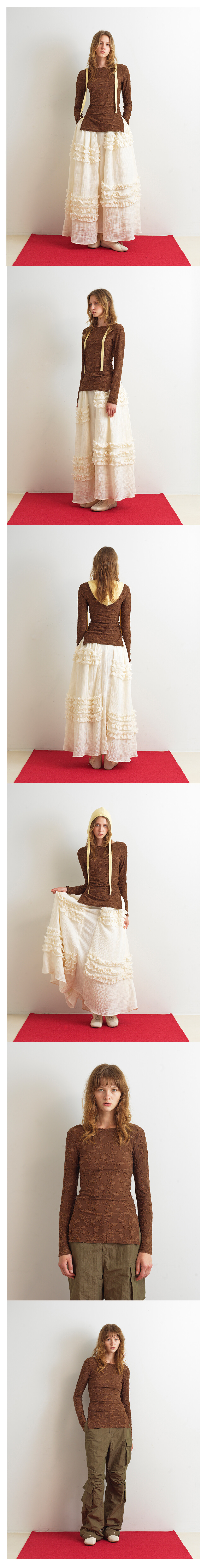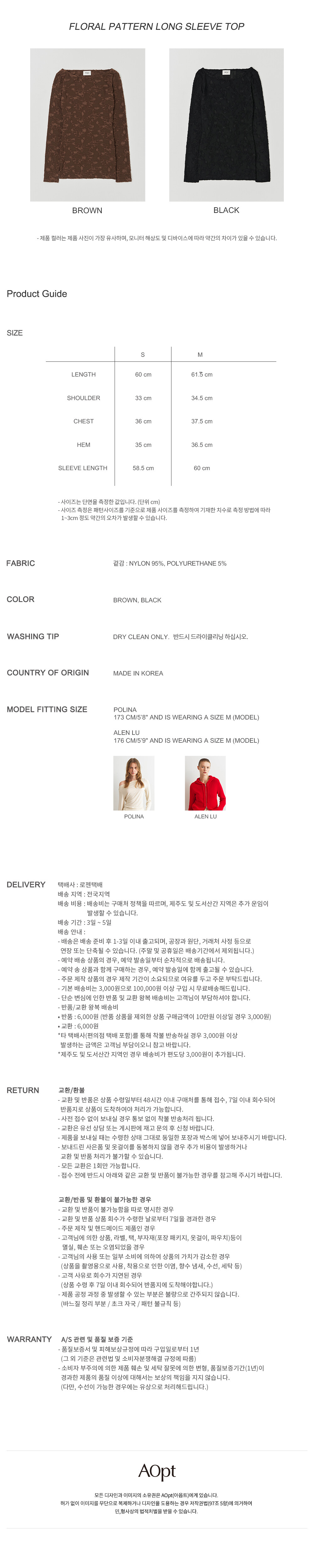 FLORAL PATTERN LONG SLEEVE TOP - BROWN