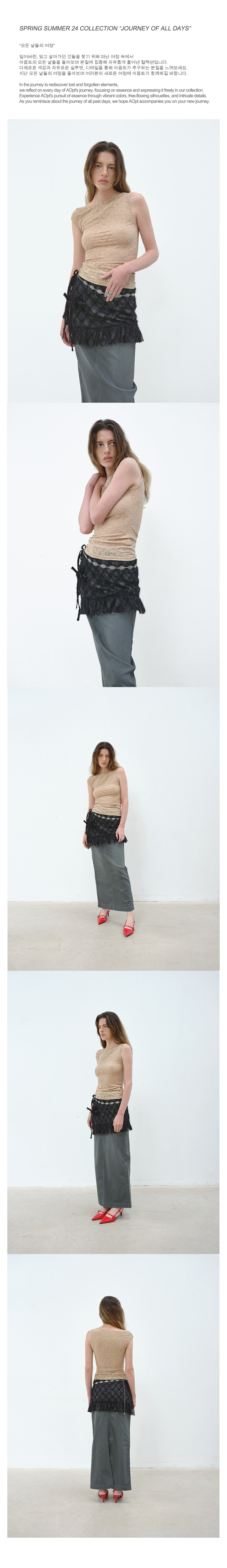 웨이스트 라인부터 두개의 스트랩 디테일이 있어 사이즈 조절 가능하며, 헴 라인의 러플디테일이 포인트가 되는 아이템입니다.