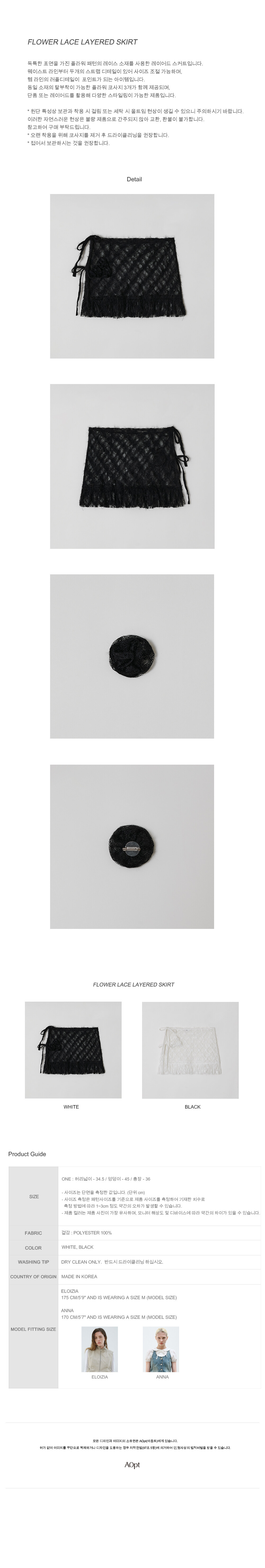 독특한 표면을 가진 플라워 패턴의 레이스 소재를 사용한 레이어드 스커트입니다.