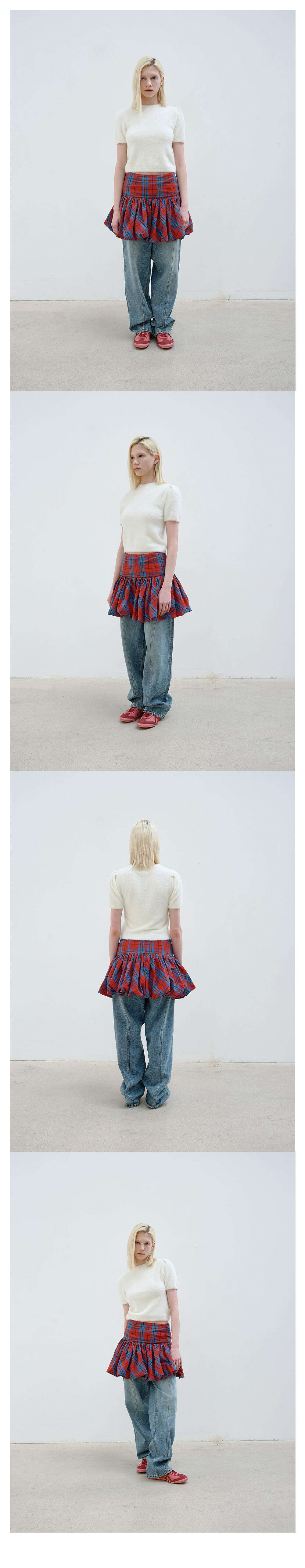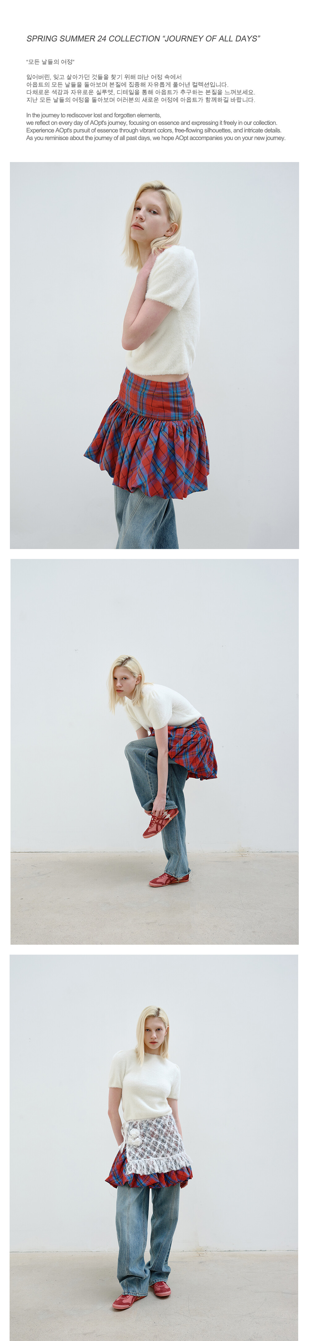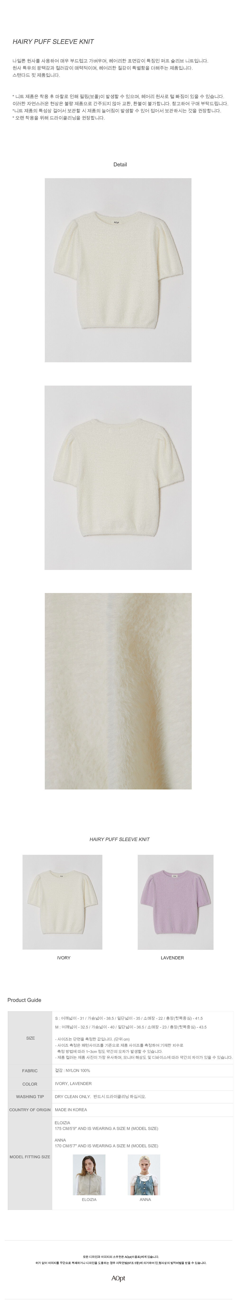나일론 원사를 사용하여 매우 부드럽고 가벼우며, 헤어리한 표면감이 특징인 퍼프 슬리브 니트입니다.