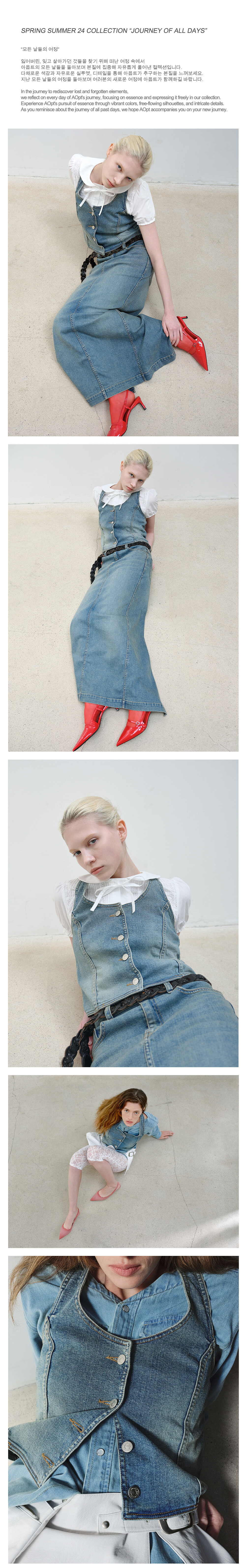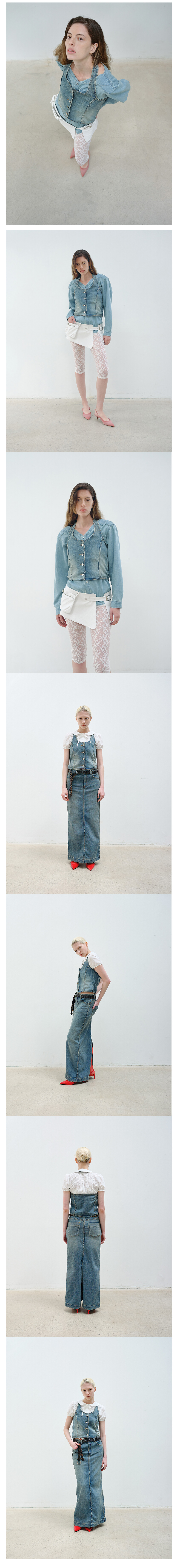 ' WASHED DENIM LONG SKIRT ' 와 셋업으로 착용 가능합니다.