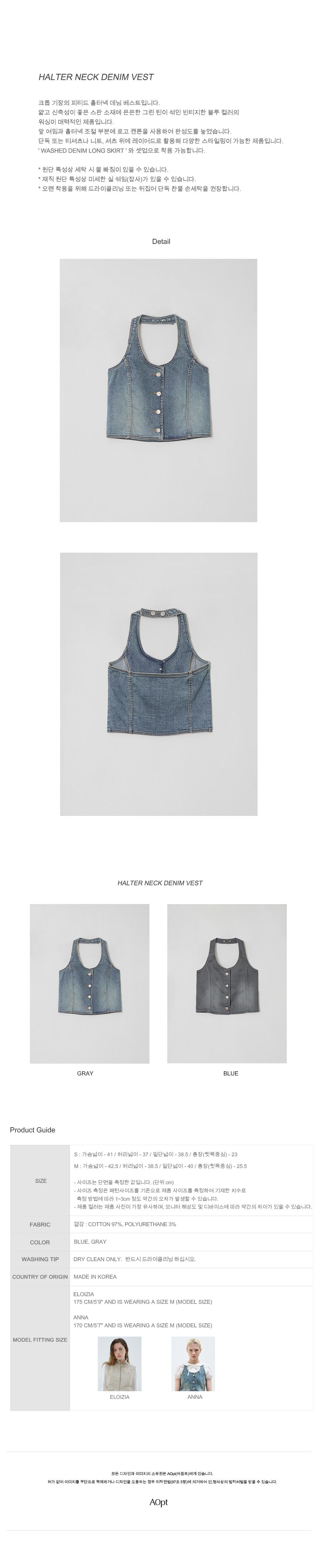 크롭 기장의 피티드 홀터넥 데님 베스트입니다.