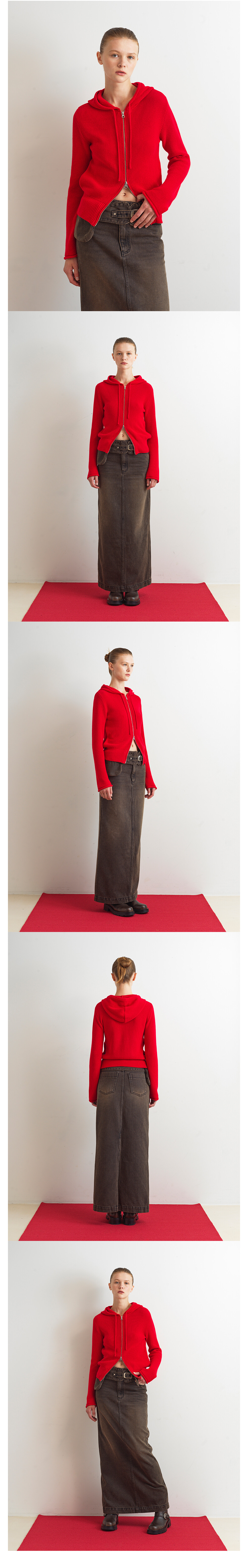 KNIT HOODIE ZIP-UP - RED