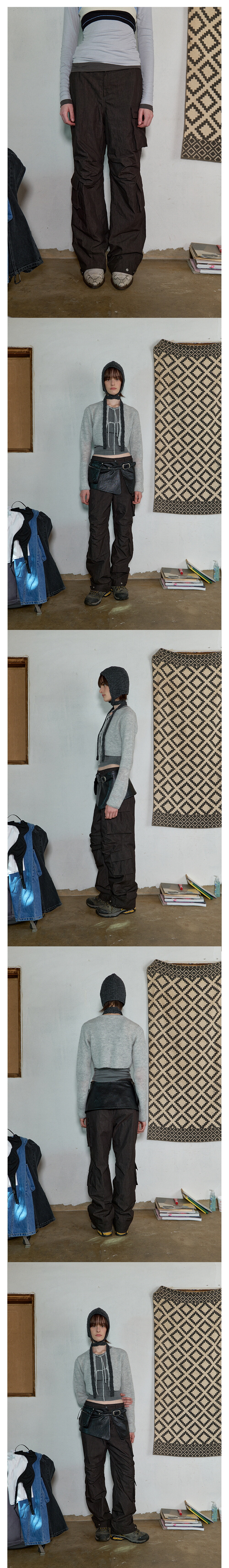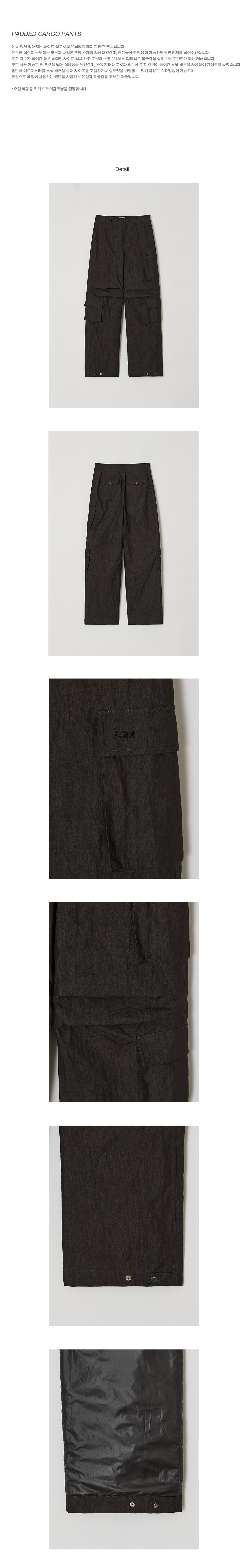 로고 자수가 들어간 좌우 비대칭 사이드 입체 카고 포켓과 무릎 2개의 턱 디테일로 볼륨감을 살려주어 포인트가 되는 제품입니다.