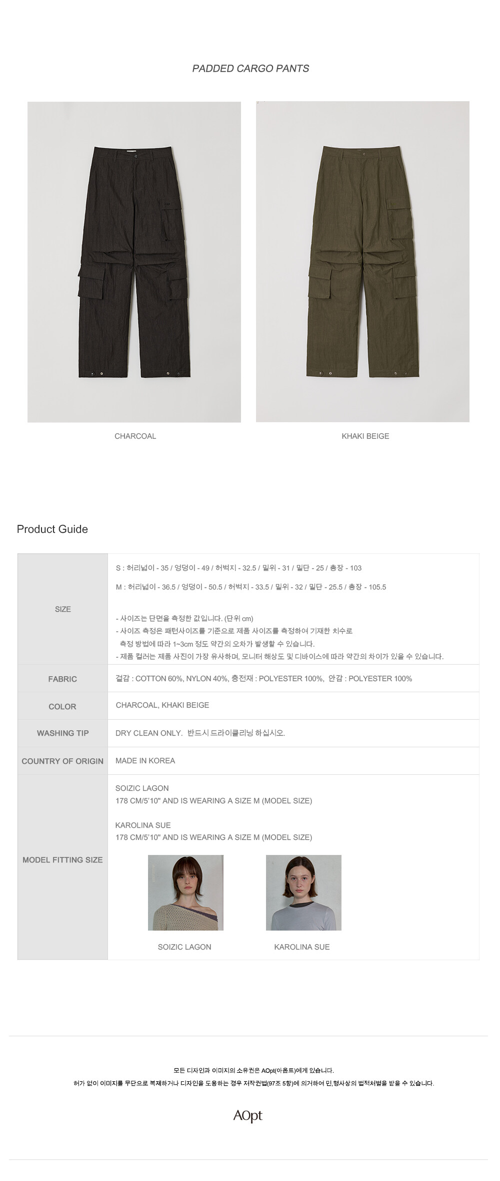 * 오랜 착용을 위해 드라이클리닝을 권장합니다.