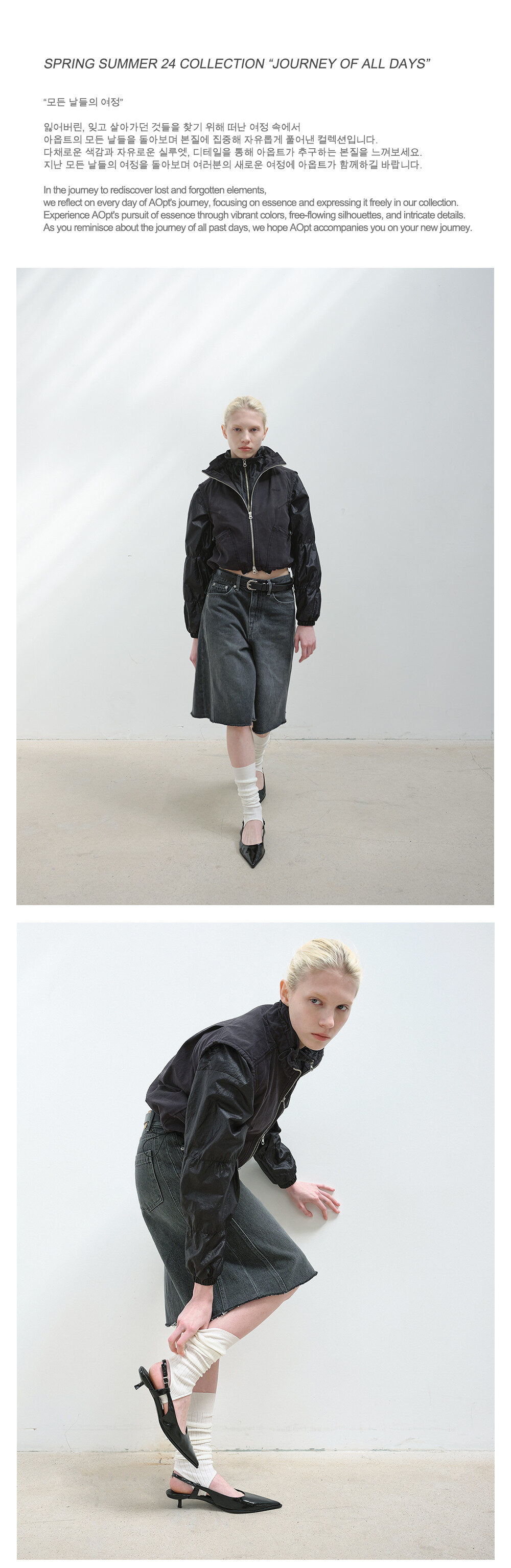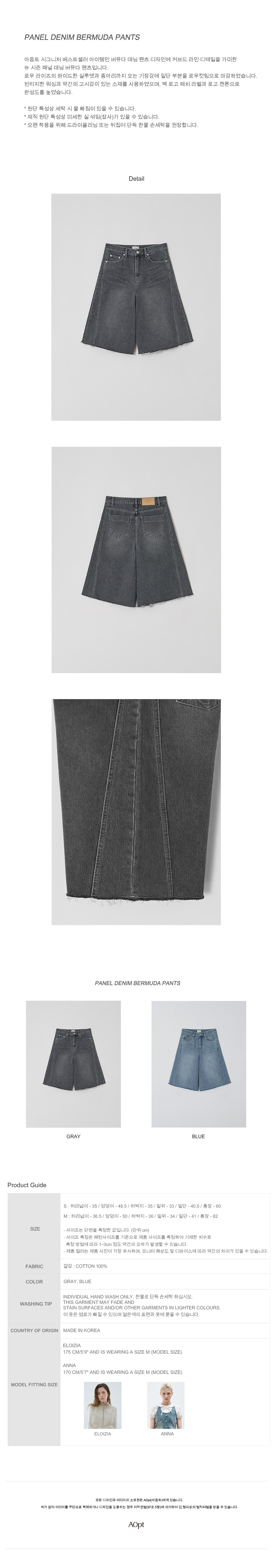 아옵트 시그니처 베스트셀러 아이템인 버뮤다 데님 팬츠 디자인에 커브드 라인 디테일을 가미한 뉴 시즌 패널 데님 버뮤다 팬츠입니다.