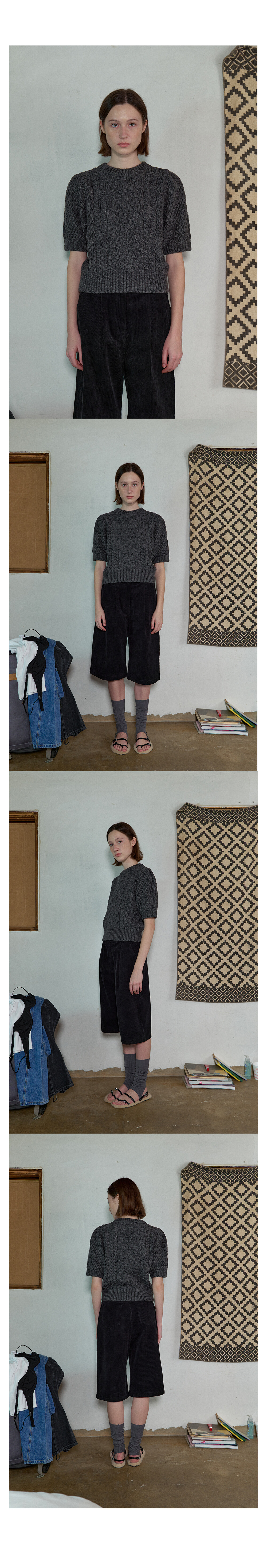 PUFF SLEEVE CABLE KNIT - CHARCOAL