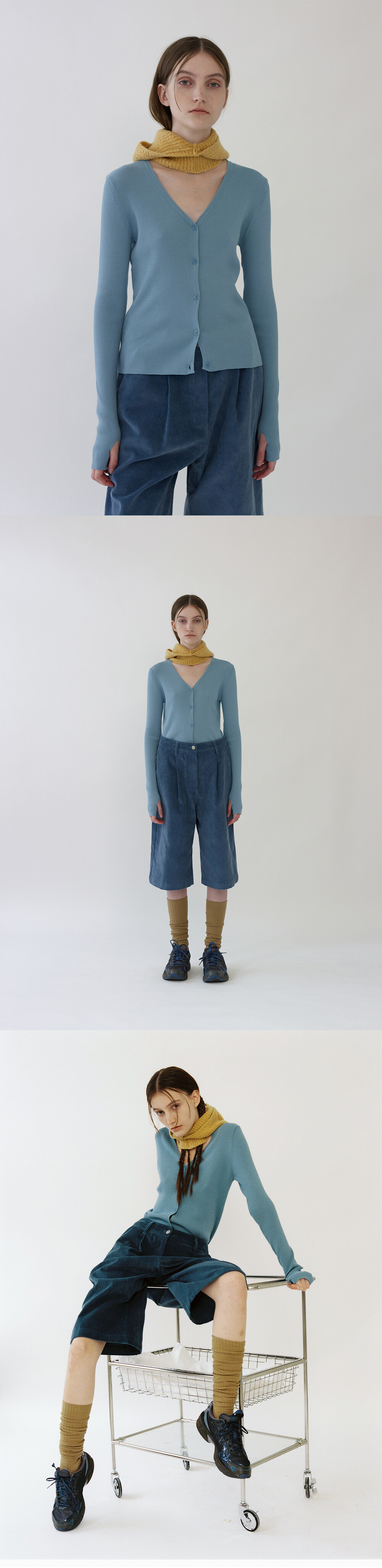 깊은 V넥 라인과 스몰 너트버튼을 이용해 다양한 연출이 가능한 워머 니트 가디건입니다.