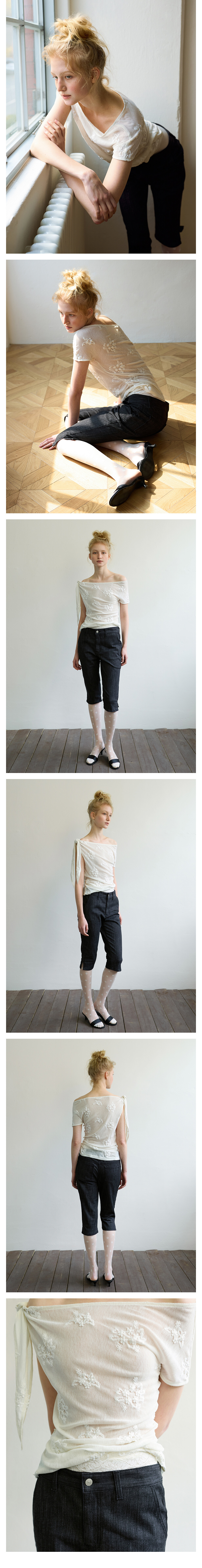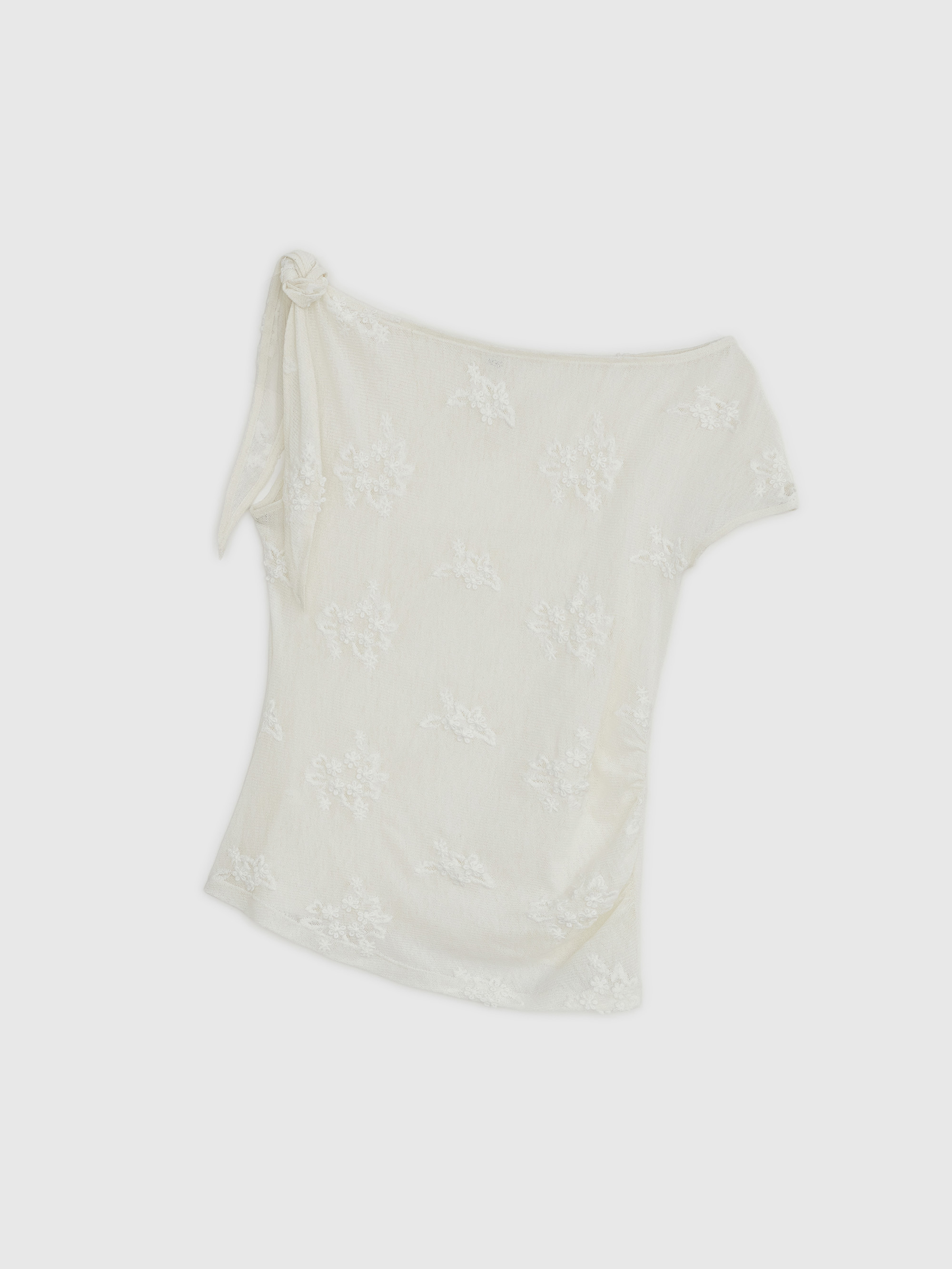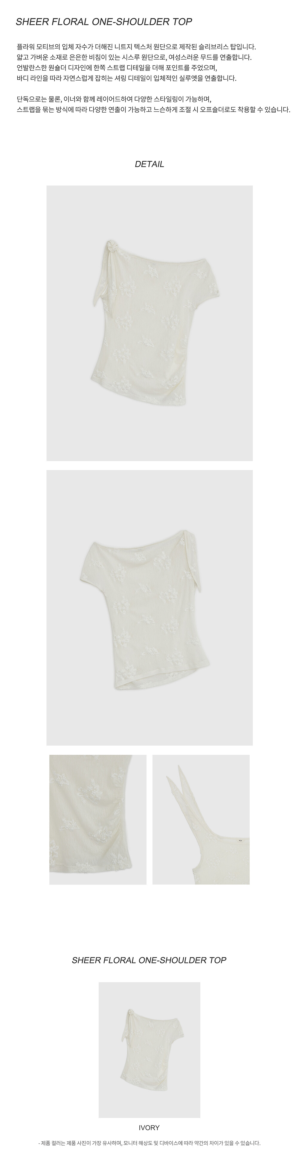 [4/15 예약발송] SHEER FLORAL ONE-SHOULDER TOP - IVORY