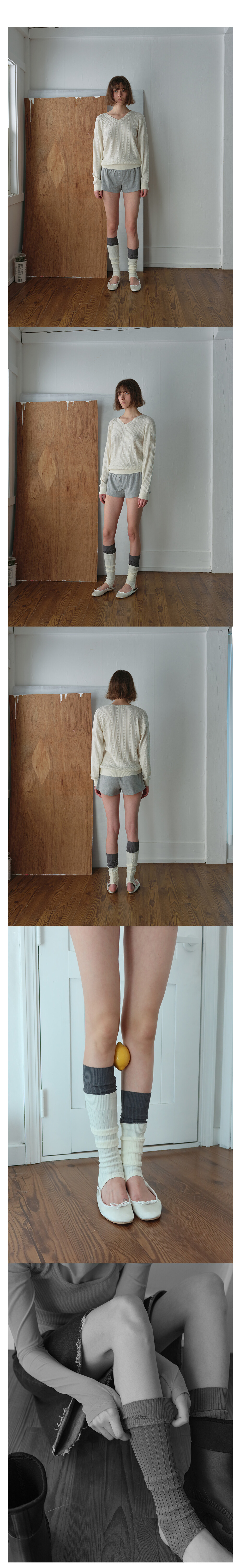 골지 니트 짜임에 사이드 자수 로고 디테일이 들어간 레그 워머입니다.