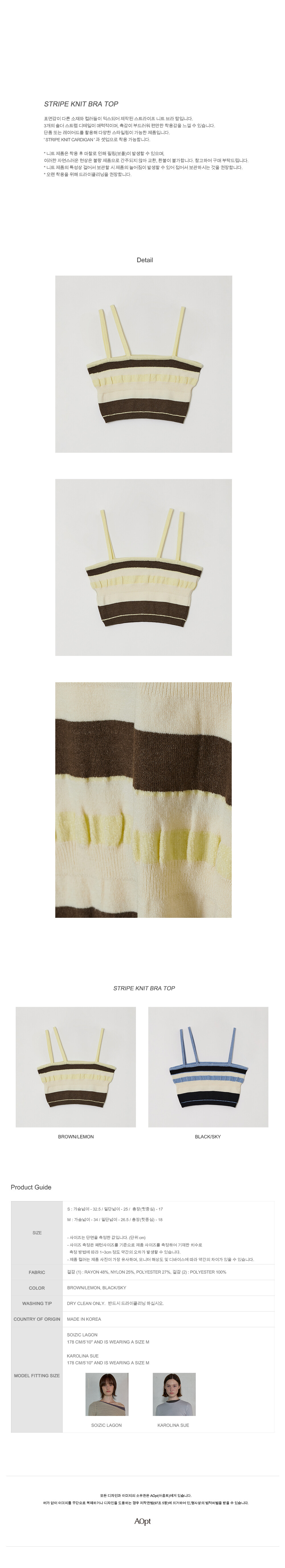 표면감이 다른 소재와 컬러들이 믹스되어 제작된 스트라이프 니트 브라 탑입니다.