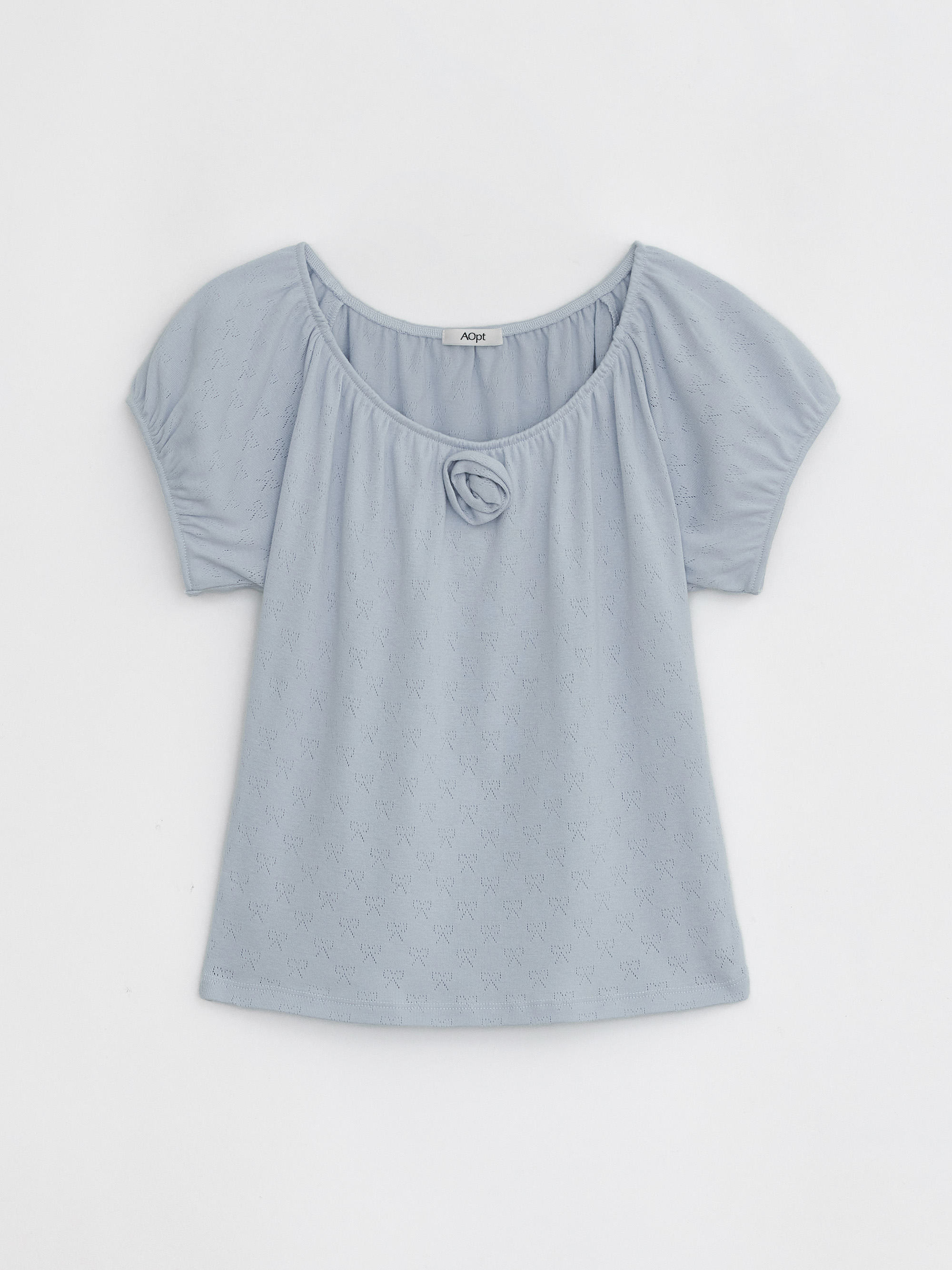 [1st Reorder] TWO-WAY ROSE SHIRRING TOP - SKY BLUE