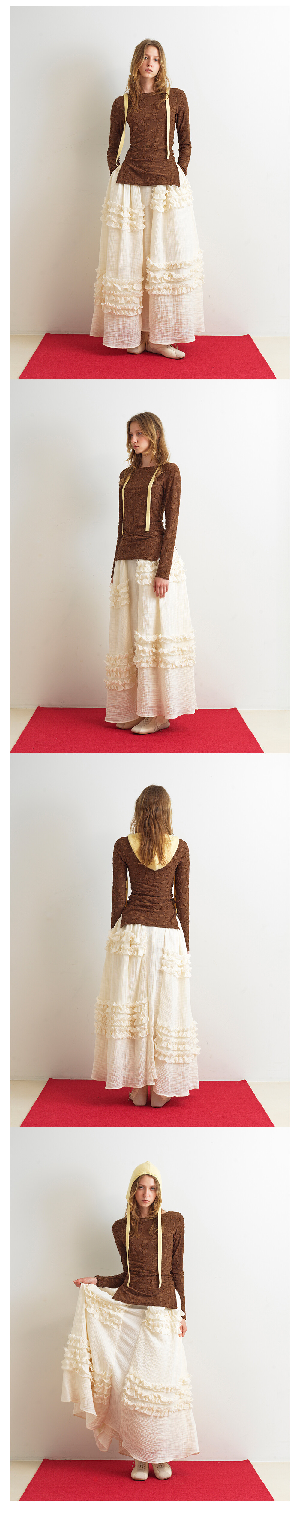 [1st Reorder] UNBALANCE FRILL MAXI SKIRT - CREAM