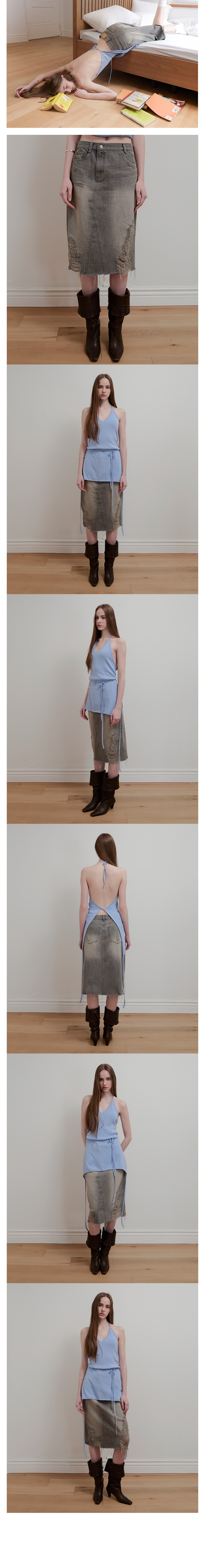 VINTAGE WASHED DENIM SKIRT - GRAY