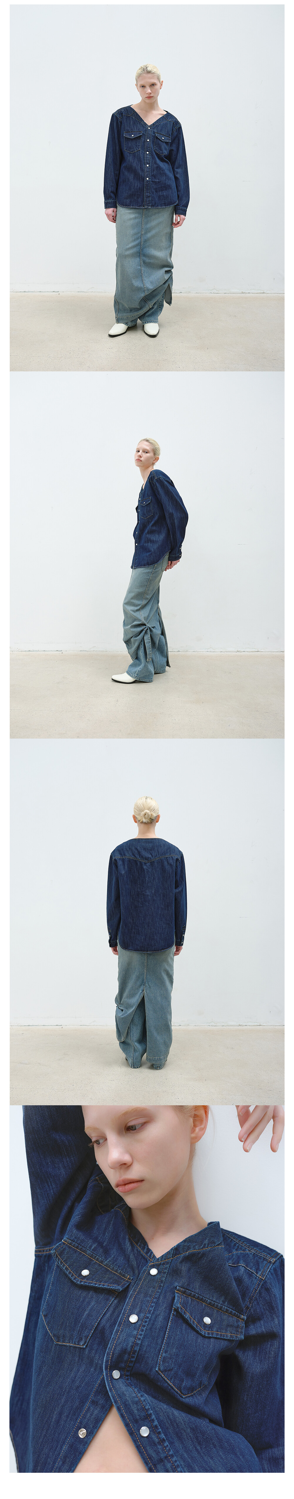 다양한 스타일링이 가능한 브이넥 데님 셔츠입니다.