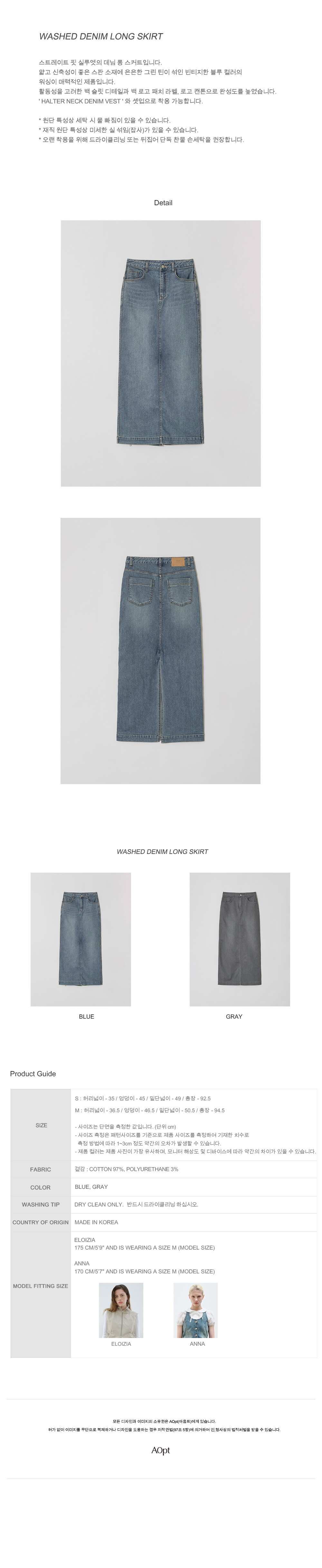 스트레이트 핏 실루엣의 데님 롱 스커트입니다.