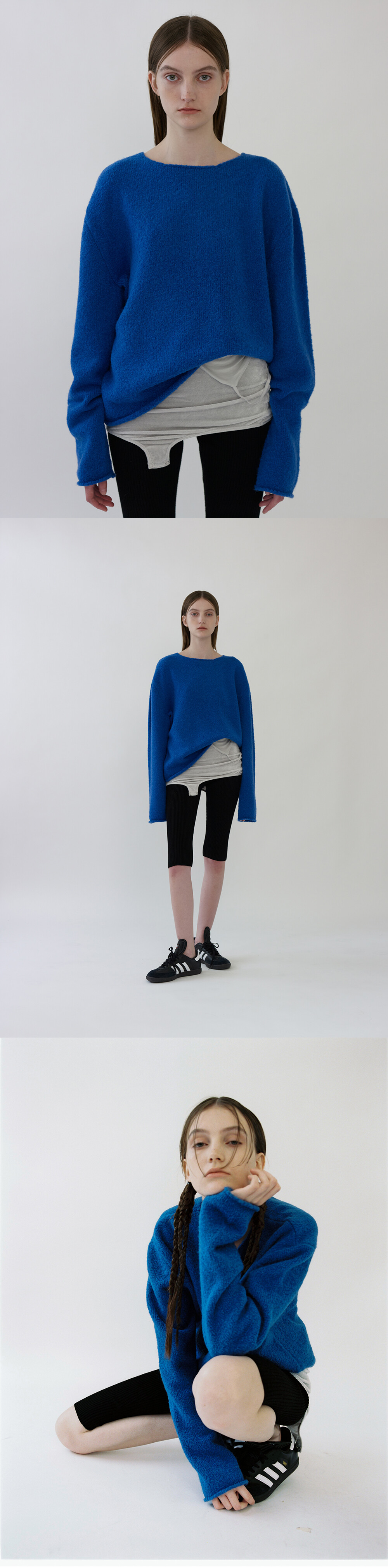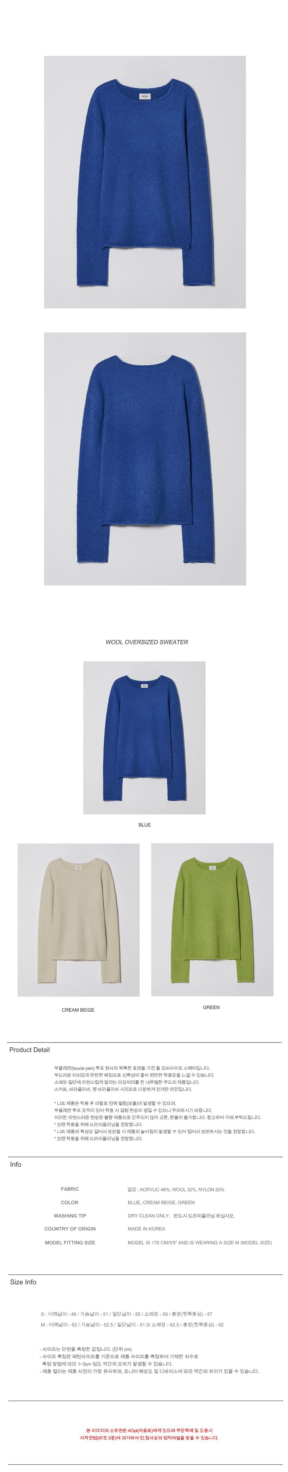 부클레얀(boucle yarn) 루프 원사의 독특한 표면을 가진 울 오버사이즈 스웨터입니다.